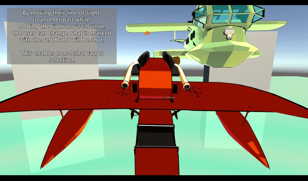 Pay homage to the Ghibli classic “Porco Rosso” by creating a game mechanic that allowed the player to make precise, non-lethal shots and incapacitate their opponent in the same way Porco does