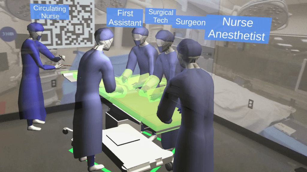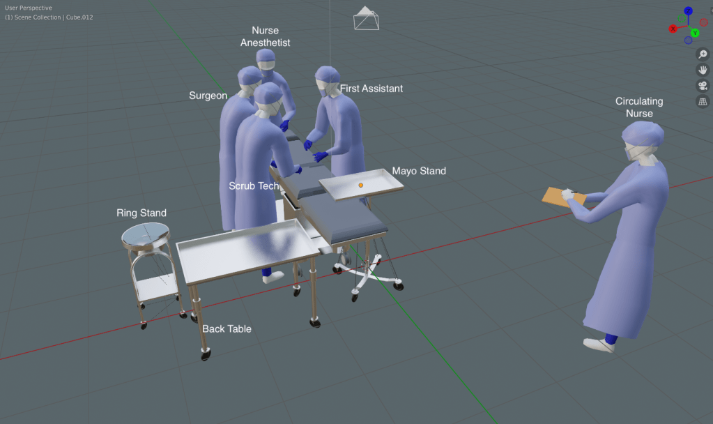 Create an augmented reality experience that allows students to observe where specific staff roles and the sterile field are positioned within an operating room in a manner superior to typical textbook diagrams.